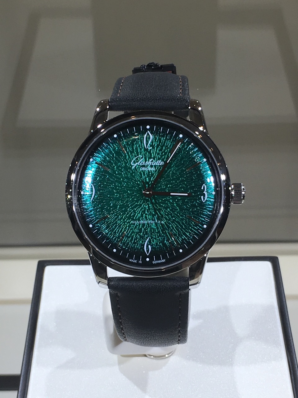 Then we move on, Glashütte has a watch with a super dial, namely the Senator Sixties. Looks great, but is extremely a matter of taste, because not everyone shares that opinion with me. Next to it, at the fair and here, the Panograph is also a gorgeous specimen. I just really like the watches because they have a great design, apart from the workmanship and technology.