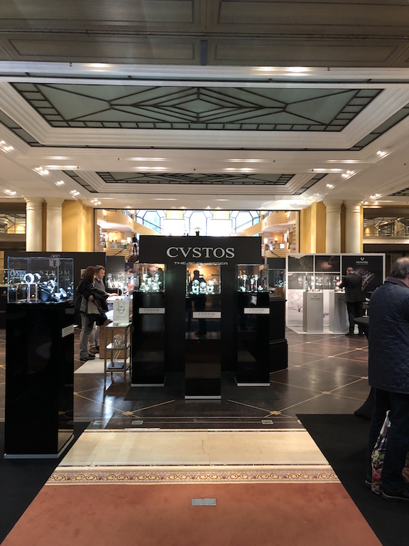 After entering the hotel, you come into a hall with a glass dome. This is where things really get going. You immediately see a lot of watch manufacturers showing their exhibits.