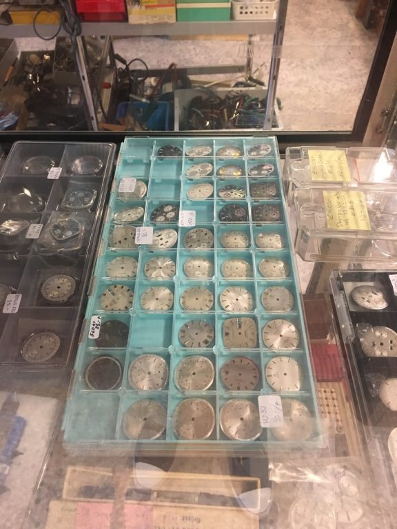 Da ich persönlich sehr gerne Dinge repariere, bin ich gerne auf Flohmärkten oder auf Schrottplätzen unterwegs. Und ich finde es toll, wenn sich Menschen der Konservierung von alter Technik widmen. Oldtimer Teile sind mittlerweile ein Business. Der Laden von Maurizio ist wie ein ein Ersatzteil Lager mit Uhren Teilen, die nicht mehr hergestellt werden. Nur dass das Ganze mehr Charme hat, als ein Profi Oldtimer Ersatzteil Vertrieb, gegründet von einem Zahnarzt oder Anwalt, der „der Sache etwas gutes tun will“ und dabei einen Haufen Geld macht… Maurizio ist ein sehr netter, wie alle Schweizer (die ich kenne) und macht seinen Job mit Leib und Seele. Die Bilder zeigen, was ich damit meine, wenn ich sage, man kann Herrli ch stöbern.